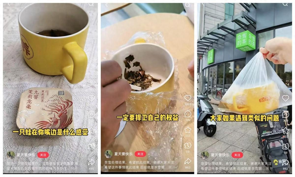 近日,有网友发帖称,在奈雪购买的茶包中,喝出了青蛙。该网友在视频中表示:\"这个心理阴影是一辈子的。\"