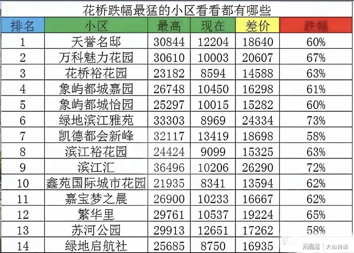 近日有网友统计数据披露,昆山花桥房价已经出现了比较大幅度的下跌,个别小区跌幅已经超过了70%以上,大多跌幅已经超过了60%。
